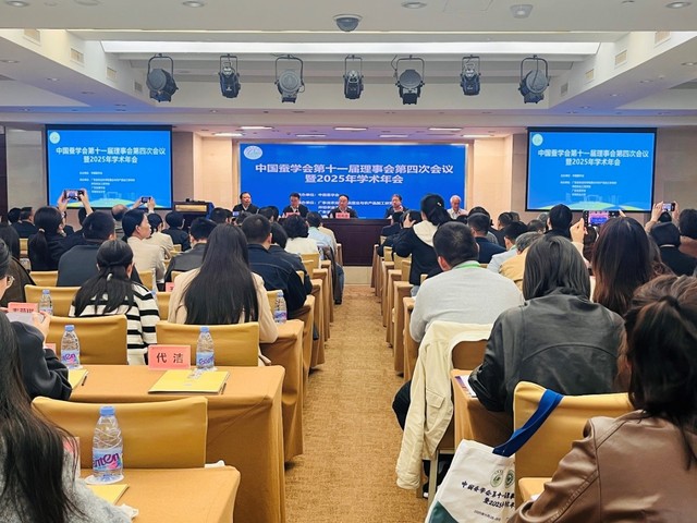 11月28-30日,由中国蚕学会主办,广东省农业科学院蚕业与农产品加工研究所、仲恺农业工程学院、广东省蚕学会、华南农业大学承办的中国蚕学会第十一届理事会第四次会议暨2025年学术年会在广州召开。中国蚕学会理事长代方银,广东省农业科学院副院长何秀古出席开幕式并致辞,中国蚕学会常务副理事长李木旺主持开幕式并做学会2025年度工作报告,中国蚕学会名誉理事长鲁成,监事长廖森泰,副理事长肖更生、周谦、董占鹏,秘书长刘利,中国丝绸协会副会长兼秘书长刘文全出席会议,来自国内有关高校、科研院所、生产管理、技术推广、企业、省学会等单位250余位代表参加会议。
