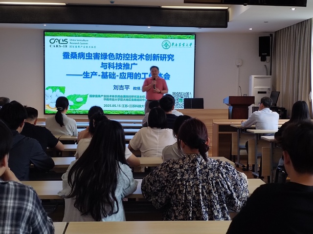 期间,刘吉平为江苏科技大学生物技术学院蚕业研究所100余名师生作了题为“蚕桑病虫害绿色防控技术创新研究与科技推广”的专题报告。结合自身80余项发明专利和10多项科技成果的研发历程,系统阐述了科研选题应源于产业需求、创新研究需依托现代科技、成果最终要服务于生产实践的宝贵经验,获得热烈反响。